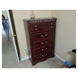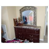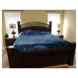 ORNATE FIVE PIECE KING BEDROOM SET W STONE TOPS.