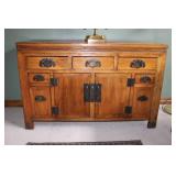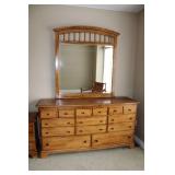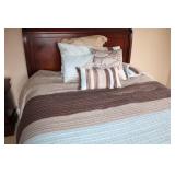 2ND UPSTAIRS BEDROOM, DESK UNIT, DECORATIVE ACCENT TABLE, WOOD DRESSER & NIGHTSTAND, WOOD BENCH WITH CUSHION, QUEEN WOOD HEADBOARD/FOOTBOARD, QUEEN MATTRESS SET, QUEEN BEDDING