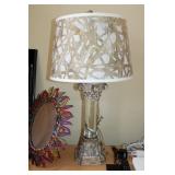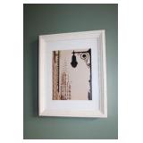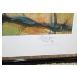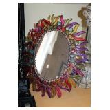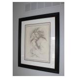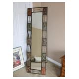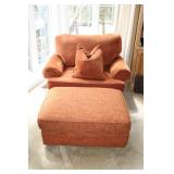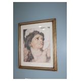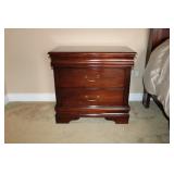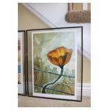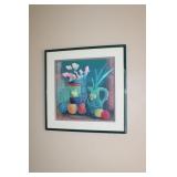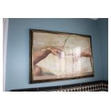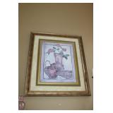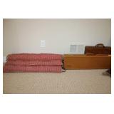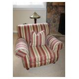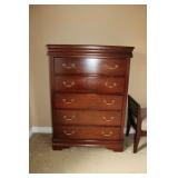 UPSTAIRS BEDROOM- LEATHER CHAIR, VAUGHAN BASSETT DRESSER W/MIRROR & NIGHTSTAND, WALL ART, DECORATIVE DRESSING MIRROR, MATTRESS TOPPER