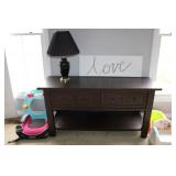 UPSTAIRS NURSERY- CHANGING TABLE, CRIB WITH PULL OUT DRAWER, UBBI DIAPER PAIL, BLACK WOOD ROCKER, LAMP, CONSOLE TABLE, LOVE WALL SIGN, WALL ART, PAINTED LANE CHEST, CHILDREN’S TOYS/BOOKS & GAMES