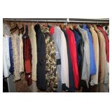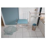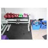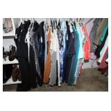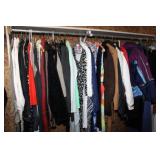 MASTER BEDROOM/EXERCISE ROOM- STORAGE RACK, BASKET, WEIGHT BENCH, WEIGHTS, FITLINE TREADMILL, EXERCISE BIKE, PRECORT STEPPER, WOMEN’S BELTS/SCARVES, WOMEN’S SHOES SIZE 7 1/2 & 8 (NINE WEST, MADEWELL, MICHAEL KORS), WOMEN’S CLOTHING/DRESSES (MADEWELL, CATO, DOLAN, OLIVIA SKY, TAHARI, WHITE HOUSE BLACK MARKET, VINCE, CALVIN KLEIN, ALLISON JOY, ANN TAYLOR, DEREK LAM, KATE SPADE, TED BAKER, ST. JOHN, TOILETRIES, BATHROOM ACCESSORIES, WALL ART, TOWELS,VANITY BENCH, METAL TOWEL STAND
