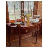 CHARMING WELLESLEY ESTATE SALE Saturday One Day Sale April 30th 9-3 Please join us for this terrific sale featuring exquisite antique lamps, pristine antique and custom furnishings. This is a great time to furnish your home or adding unique distinctive items to your decor. HIGHLIGHTS FURNITURE: Fantastic Inlaid Table, Immaculate antique Sofa with carvings, Federal Sofa in pristine condition, Regal Custom Breakfront, Ornate Occasional Tables, 6 Sheraton Style Chairs with well defined fleur de lis backs, Gadroon and inlaid Dining Room Table, Louis the XV Chairs, Hepplewhite style inlaid Console Table, Fantastic Flamed Veneer Mahogany Chest, Other Chests, Bureaus, Beds, Night Stands, Flat top Desk, Paine Governor Winthrop Desk, Small Burled mirror back server, Pair of Danersk Candle Stands, DemiLune Console Table, Antique 2 draw work Tables, Library Table, Wicker Desk, Iron Bench... LAMPS: Pairpoint Reverse Painted Lamp, 2 Handel Reverse Painted Lamps, Slag Glass Lamp, Sandwich Glass Lamps, Crystal lighting... CHINA, GLASS POTTERY: Austrian Ewer, Dinner Service by Limoges, Stemmed Goblets, Green with gold Glasses, Multi colored Cordials, Cut Crystal, Pair green etched covered Jars, Several pieces of Fairy Lustre by Wedgewood, Cocoa Set, Royal Worcester, Royal Doulton Punch Bowl, Villeroy and Boch... ITEMS OF INTEREST: Several Oriental Rugs, Copper Bucket, Albums, CD's, Flatware set by Remy, Linens, Anosina Tunis Clock, Old brass candlesticks, Jardinieres, Books, Beovox S45 Bang & Olufsen Speakers, Thorens TD 115 MKII Turntable, Kitchen, Fireplace, Kitchen... ART: Lovely Oil of White Mountains, Asian Woodblocks, Many prints.. This is a partial list of the wonderful items to be sold. Everything must be sold!!