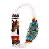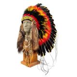 - 2005 VINTAGE MATT & SYLVIA SECATERO NAVAJO "MYSTIC SUNSET" HEADDRESS WAR BONNET WITH BETSY PIASO NAVAJO BREASTPLATE