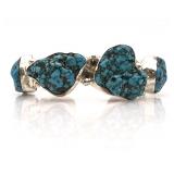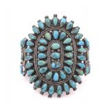 - 2006 OLD PAWN VICTOR MOSES BEGAY NAVAJO SILVER PETIT POINT MORENCI TURQUOISE CLUSTER CUFF