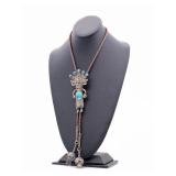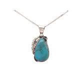 - 3050 SYLVIA CHEE NAVAJO STERLING SILVER TURQUOISE FEATHER PENDANT NECKLACE