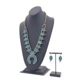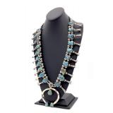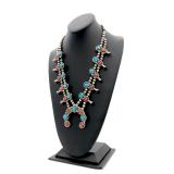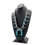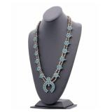 - 3025 VINTAGE NATIVE AMERICAN SILVER TURQUOISE SQUASH BLOSSOM NECKLACE