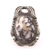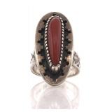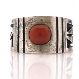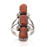 - 2057 NATIVE AMERICAN STERLING CORAL CABOCHON RING
