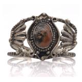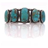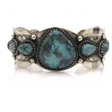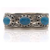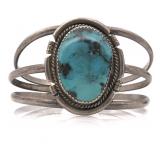 - 2064 NATIVE AMERICAN EARLY CAST STERLING TURQUOISE CUFF