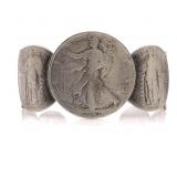 - 2000 OLD PAWN NATIVE AMERICAN SILVER WALKING LIBERTY HALF DOLLAR & MERCURY DIME SQUASH BLOSSOM NECKLACE