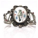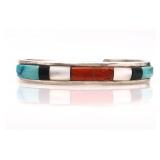 - 2009 CHARLIE BOWIE NAVAJO SILVER CORAL TURQUOISE INLAY CARDINAL CUFF