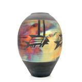 - 2050 MICHAEL WEINBERG RAKU POTTERY FISH MOTIF VASE