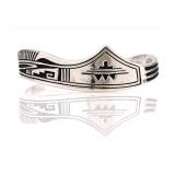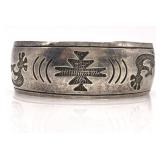 - 2056 NATIVE AMERICAN NAVAJO KOKOPELLI STAMPED STERLING SILVER CUFF