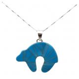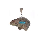 - 2058 NATIVE AMERICAN STERLING INLAID TURQUOISE BEAR FETISH PENDANT NECKLACE
