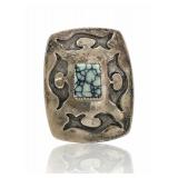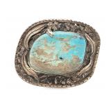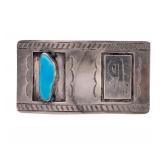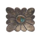 - 2060 NATIVE AMERICAN STAMPED SILVER TURQUOISE BELT BUCKLE