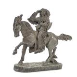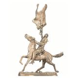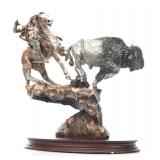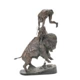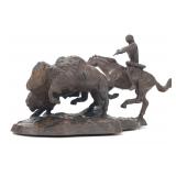 - 2062 FREDERIC REMINGTON "BUFFALO SIGNAL" SILVERED PATINA SCULPTURE