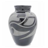 - 2054 VINTAGE GEEGI BLACK SABLE NATIVE AMERICAN STYLE WEDDING VASE