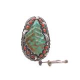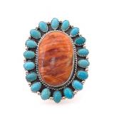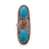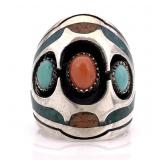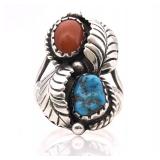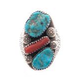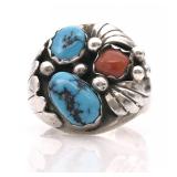 - 3087 CECIL HENRY NAVAJO STERLING SILVER TURQUOISE CORAL RING