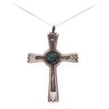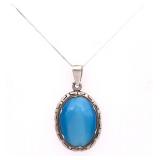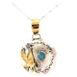 - 2037 BW SIGNED NATIVE AMERICAN STERLING TURQUOISE PENDANT NECKLACE