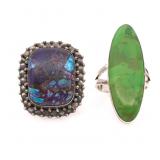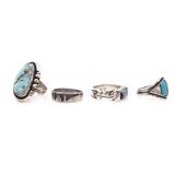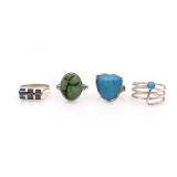 - 3082 4PC SOUTHWESTERN STERLING SILVER TURQUOISE ABALONE RINGS