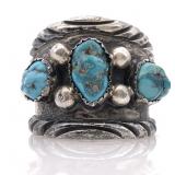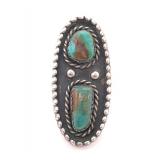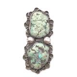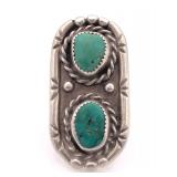 - 3049 VINTAGE NATIVE AMERICAN SILVER DOUBLE NUGGET TURQUOISE RING
