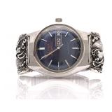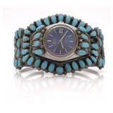 - 3029 VINTAGE NATIVE AMERICAN SILVER TURQUOISE CORAL WATCH CUFF WITH TECHNOS THE KING AUTOMATIC WATCH