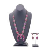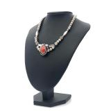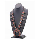 - 3046 VINTAGE NATIVE AMERICAN SILVER CORAL SQUASH BLOSSOM NECKLACE