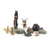 - 3030 ZUNI HAND CARVED STONE MIXED ANIMAL FETISH NECKLACE
