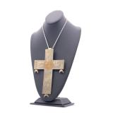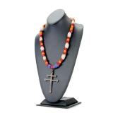 - 3086 VINTAGE ISLETA PUEBLO DRAGONFLY COPPER CROSS GLASS BEAD PENDANT NECKLACE
