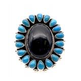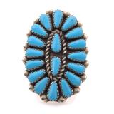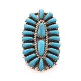 - 3032 VINTAGE NATIVE AMERICAN SILVER TURQUOISE CLUSTER RING