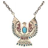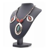 - 3094 VINTAGE ELIAS NAVAJO STERLING SILVER TURQUOISE CORAL HEISHI PENDANT NECKLACE