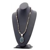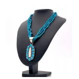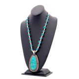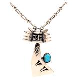 - 3083 LARRY MOSES YAZZIE NAVAJO STERLING SILVER TURQUOISE PENDANT NECKLACE