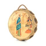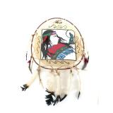 - 2008 VINTAGE NATIVE AMERICAN HAND PAINTED RAWHIDE DANCE SHIELD
