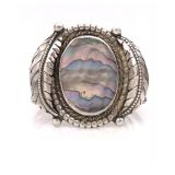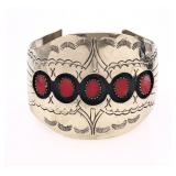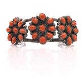 - 3038 VINTAGE NATIVE AMERICAN SILVER CORAL CLUSTER FLORAL CUFF