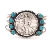 - 2036 VINTAGE NATIVE AMERICAN GRADUATED SILVER COIN CUFF