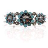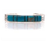 - 3073 CY SOUTHWESTERN STERLING SILVER TURQUOISE INLAY CUFF