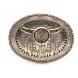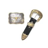 - 3080 VINTAGE ADM GOLD/SILVER PLATE WESTERN STEER SKULL BELT