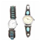- 3078 VINTAGE NATIVE AMERICAN SILVER WATCH TIPS & TIMEX WATCH