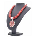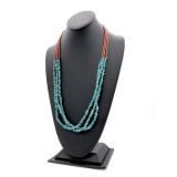 - 3066 VINTAGE NAVE AMERICAN 20 STRAND CORAL NECKLACE