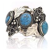 - 3055 NATIVE AMERICAN STERLING SILVER TURQUOISE CUFF