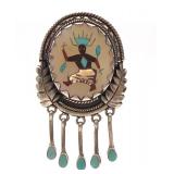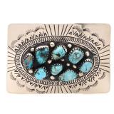 - 2001 LARGE ART LEWIS CHOCTAW STERLING TURQUOISE KACHINA BELT BUCKLE