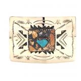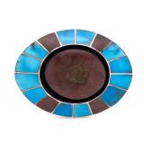 - 3026 BOBBE LEE NATIVE AMERICAN SILVER TURQUOISE WOOD INLAY BELT BUCKLE