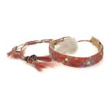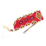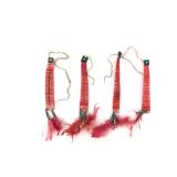 - 3097 VINTAGE NATIVE AMERICAN RED GLASS BRASS BEAD LEATHER 5 STRAND LOOP NECKLACE