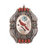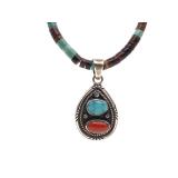 - 3039 VINTAGE NATIVE AMERICAN SILVER TURQUOISE CORAL PENDANT