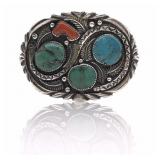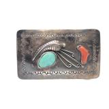 - 3065 NATIVE AMERICAN SILVER TURQUOISE CORAL BELT BUCKLE