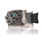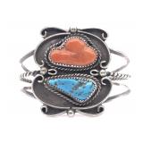 - 3085 FRANK DAVID STERLING SILVER TURQUOISE CORAL WATCH CUFF