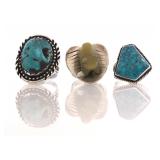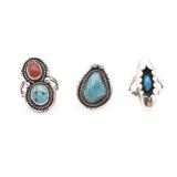 - 3089 3PC NATIVE AMERICAN SILVER TURQUOISE CORAL RINGS