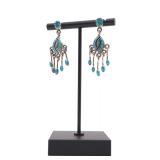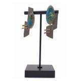 - 3071 MR NATIVE AMERICAN STERLING SILVER OPAL DROP DANGLE EARRINGS