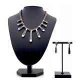 - 3017 NATIVE AMERICAN STERLING SILVER HEISHI JET TURQUOISE NECKLACE