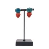 - 3067 2PC NATIVE AMERICAN SILVER & SILVER TONE CORAL TURQUOISE SPIDER PINS