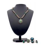 - 3022 5PC NATIVE AMERICAN SILVER TURQUOISE JEWELRY